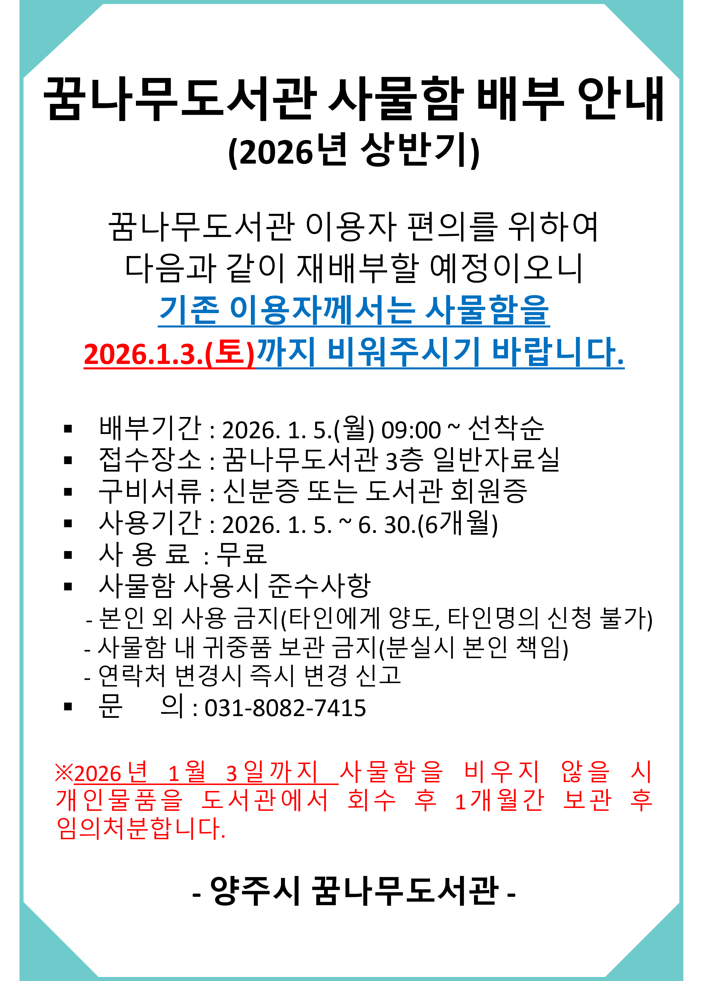 2026년 상반기 꿈나무도서관 사물함 배부안내