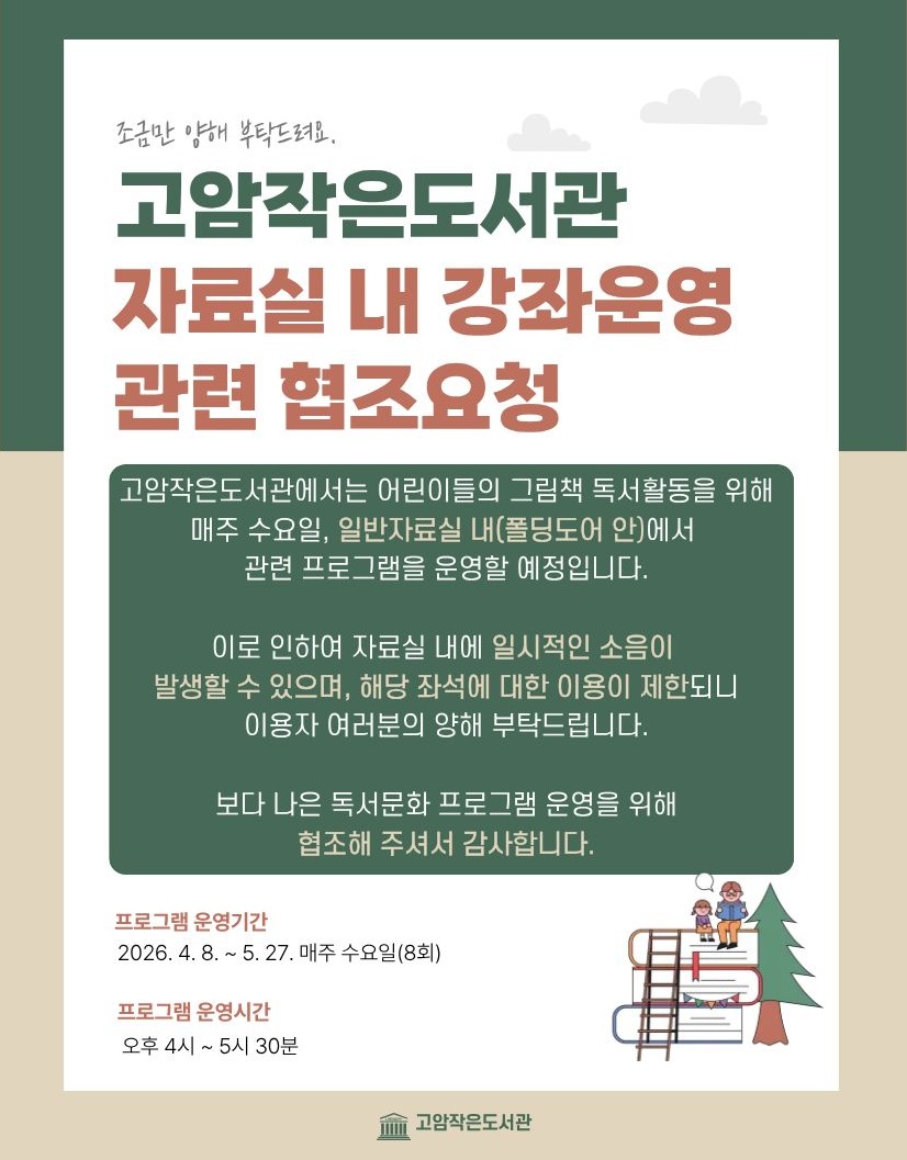 고암작은도서관 자료실 내 프로그램 운영 관련 협조 요청