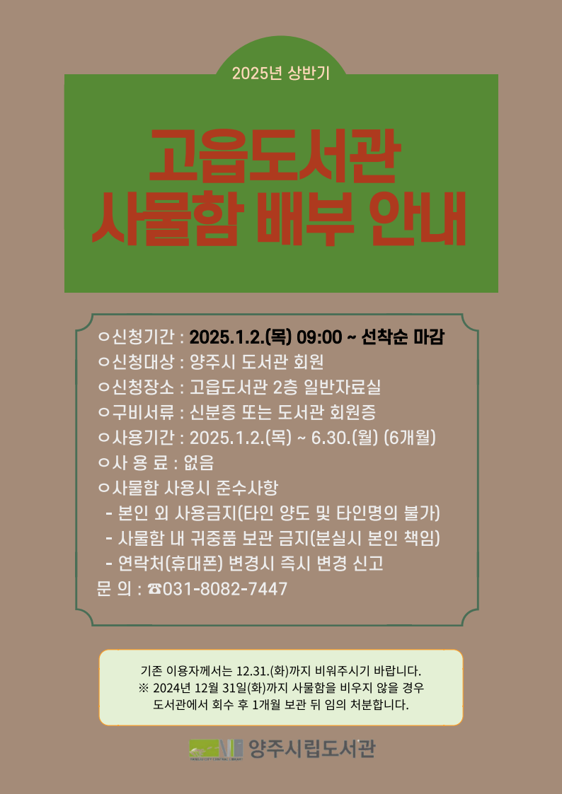 2025년 상반기 덕정도서관 사물함 배부 안내