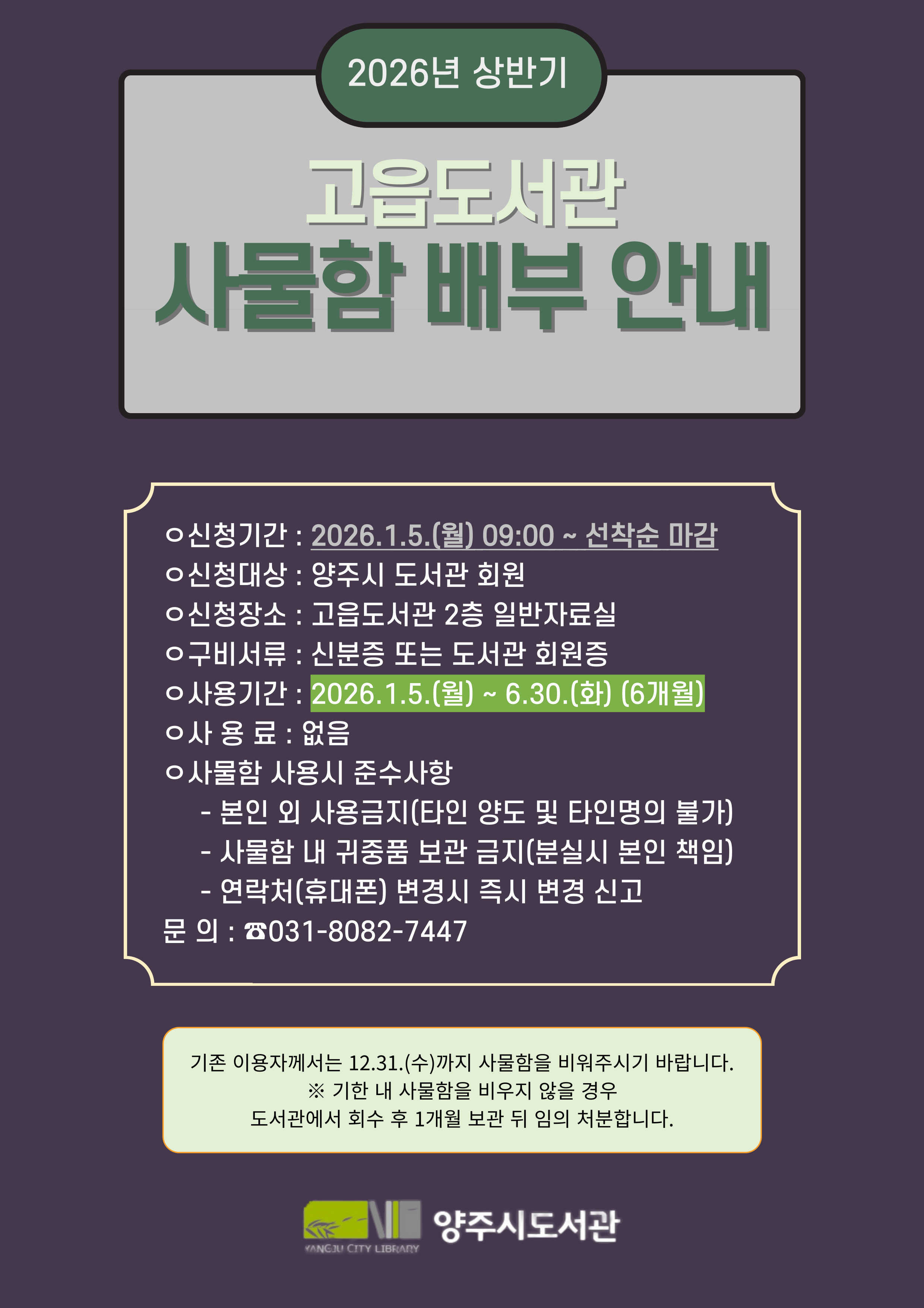 2026년 상반기 고읍도서관 사물함 배부 안내