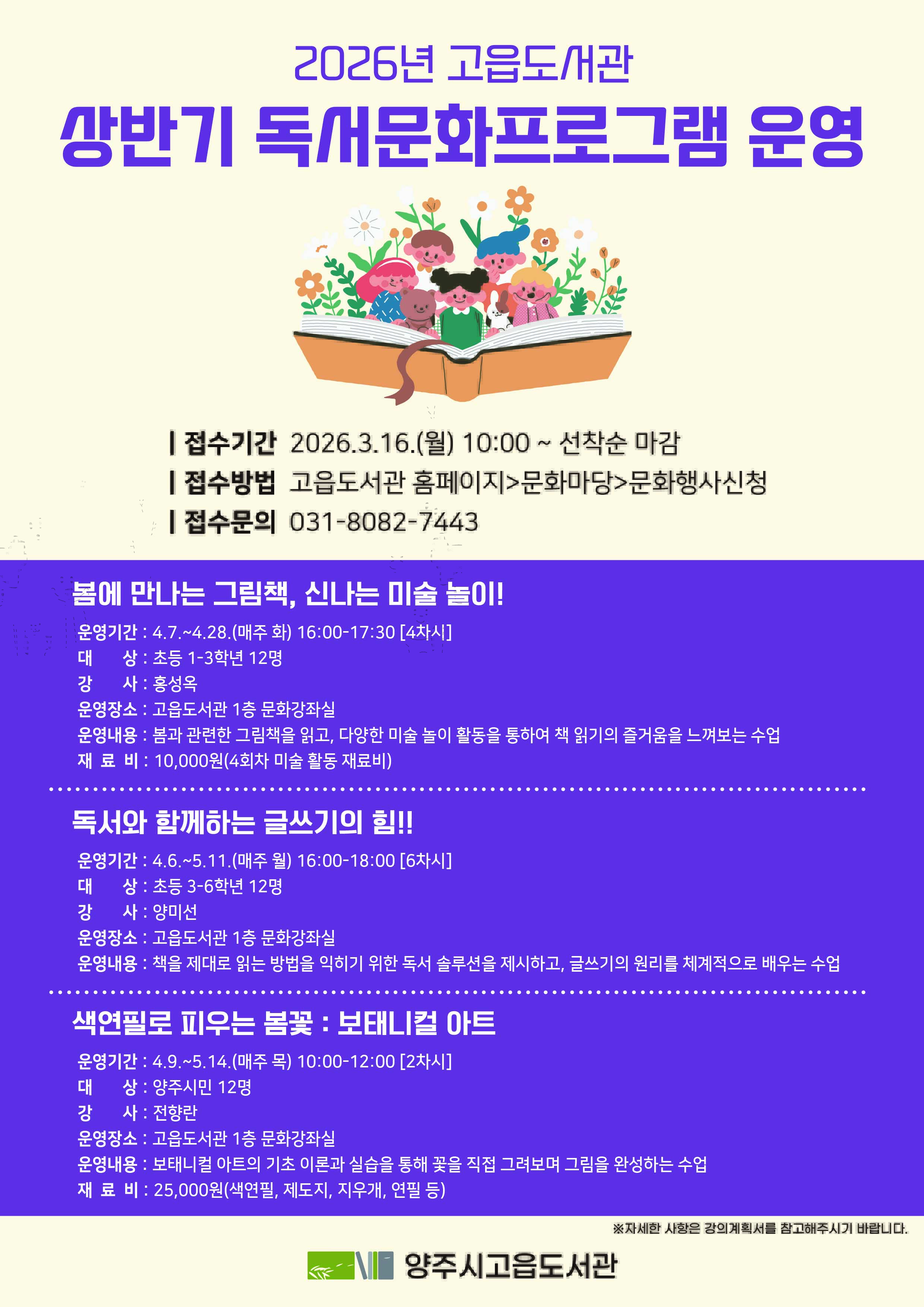 2026년 고읍도서관 <상반기 독서문화 프로그램> 운영 안내