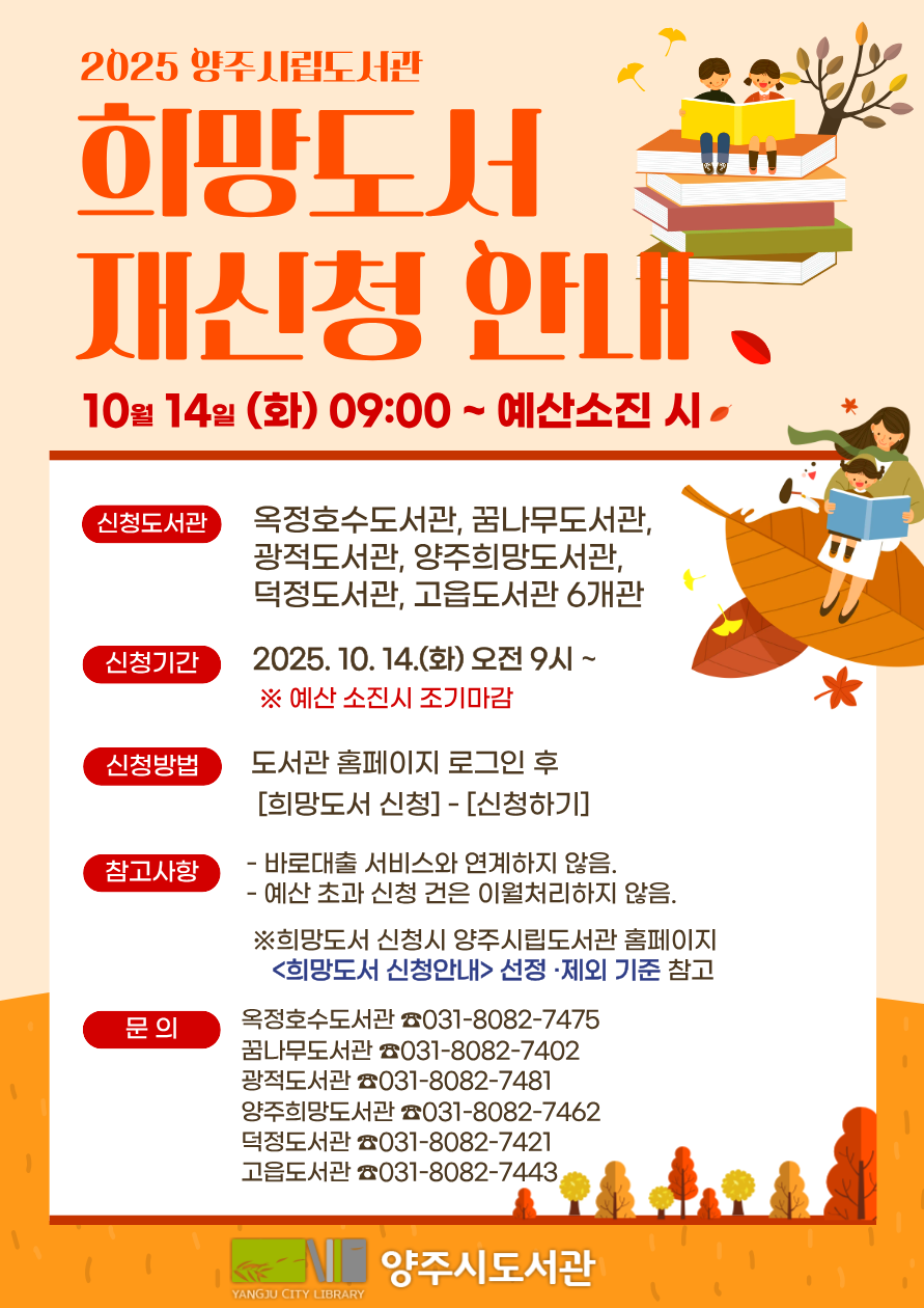 제목 | 2025년 양주시립도서관 6개관 희망도서 재신청 안내 |