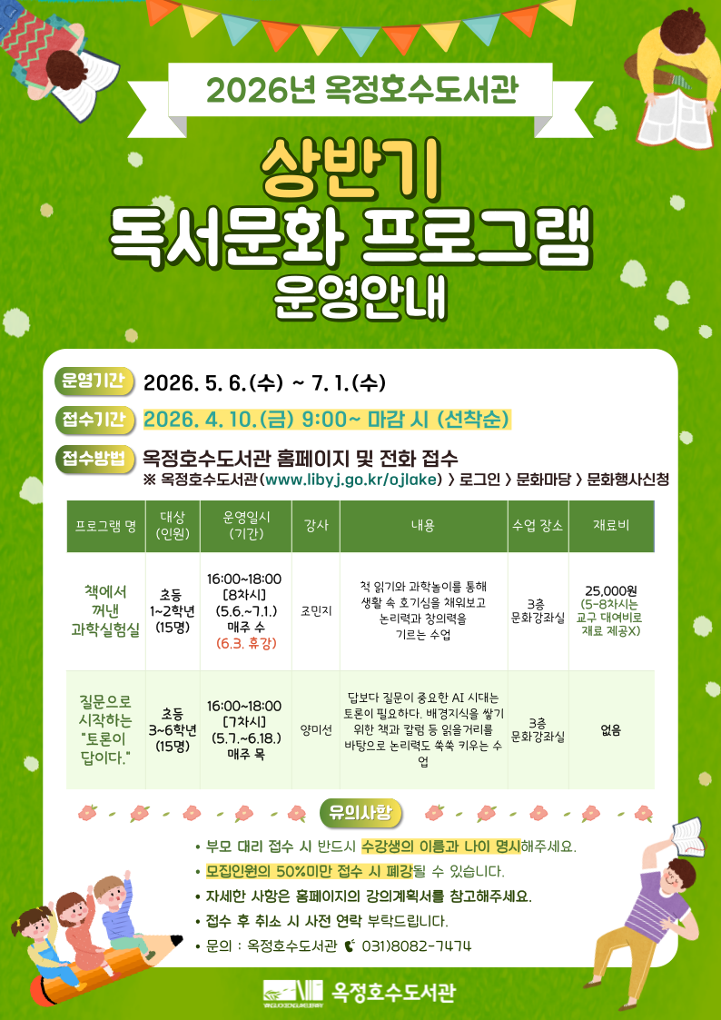 - 장소: 옥정호수도서관 3층 문화강좌실